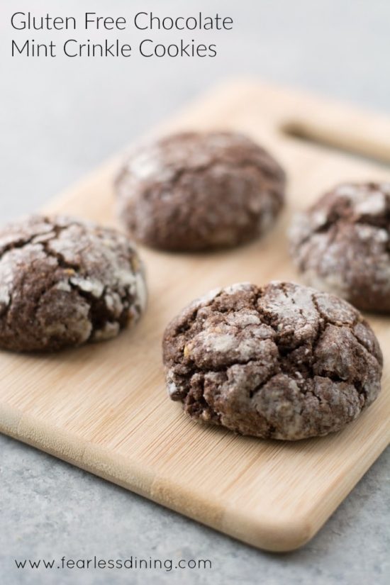 If you love chocolate mint, especially with Andes Chocolate Mint candies, these gluten free chocolate crinkle cookies should go onto your must try coo ...