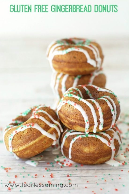 These gluten free gingerbread donuts are a delicious holiday treat. They are crispy on the outside and tender on the inside!! Stack them up and eat t ...